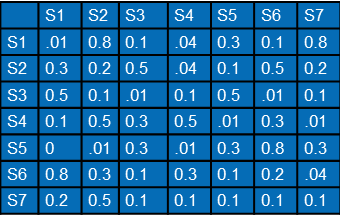 The direct requirements matrix for a given model.![]() "S" stands for Sector. Sectors are commodities, whose IDs almost match NAICS (industries). The columns contain the fraction of $1 required to produce an additional dollar's worth of each row. |